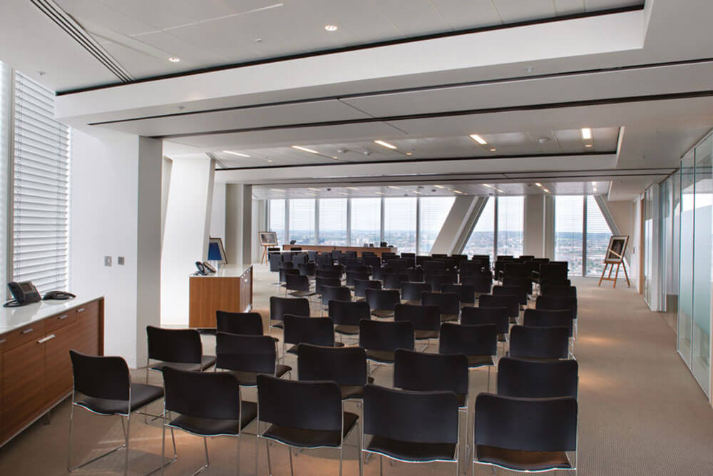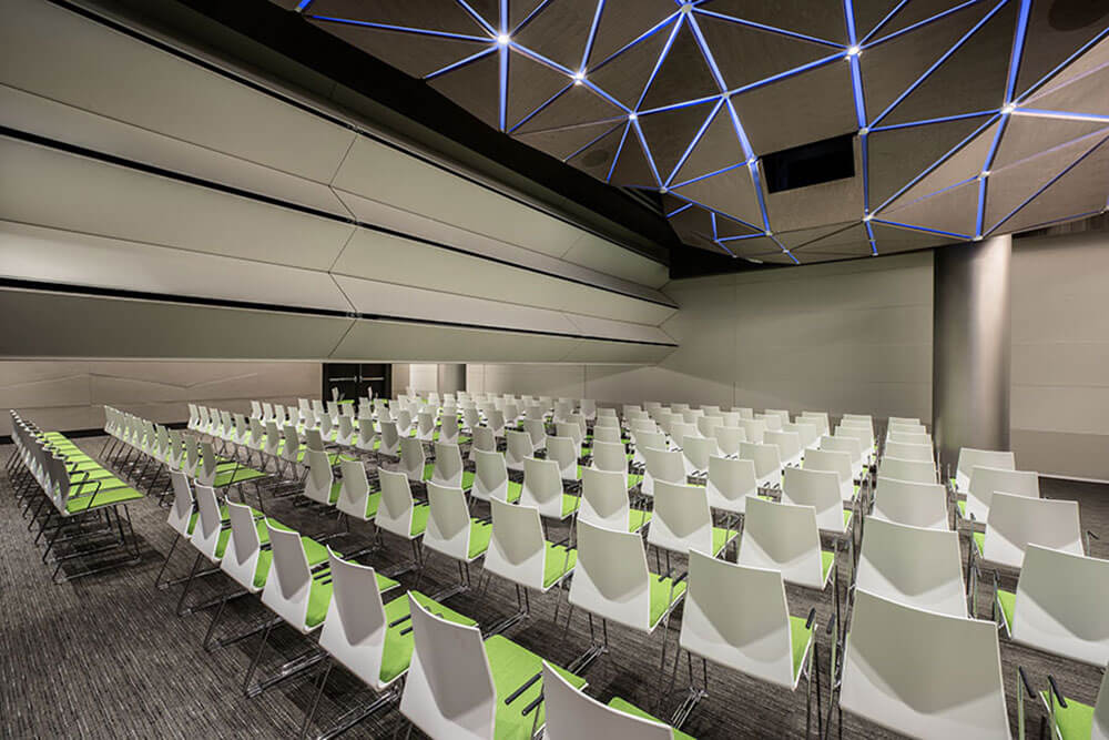 Skyfold Classic can be adapted individually to almost any layout and is suitable for use in straightforward or complex floor plans. The Classic series is also ideal for rooms with stepped or sloping floors, or a combination of the two as often found in auditoriums and academic environments. The flexibility of the Skyfold system allows the multifunctional use of valuable space.