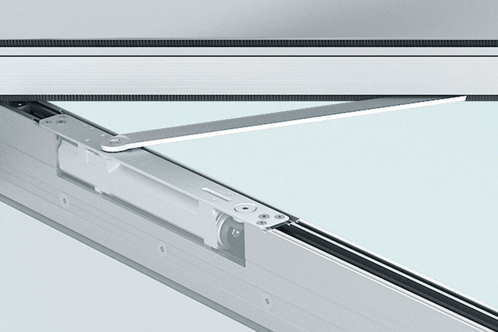 The manual version impresses in terms of its easy operability and reliable functionality. The locking components, for example, are elegantly concealed in the frame profiles, with visual elegance further enhanced by an innovative door closer that is completely integrated within the door transom.